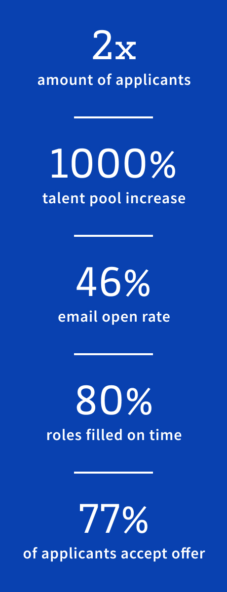 There aren’t just more qualified candidates in their talent database, however, but more engaged candidates, too – Miller’s Health reports that their personalized email campaigns have a staggering 46% open rate, but a conversion rate from passive prospects to warm applicants that’s almost twice as high as Indeed, their principal source of external job advertising.